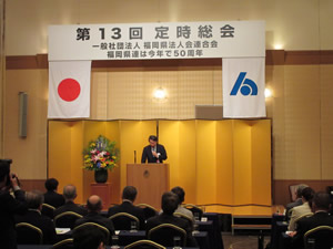 6月12日に福岡市で福岡県法人会連合会第3回定時総会が開催されました。 議題の平成26年度収支決算報告及び任期満了に伴う役員選任の2件の承認案件は、いずれも賛成多数で承認されました。 また、当会は、昨年に引き続き、「会員増強成績優秀会」「福利厚生事業推進成績優秀会」として、県連会長表彰を受けました。 新しい県連理事に、当会からは矢野会長、森山副会長、阿部副会長の3名が選任され、任期は29年度開催の定時総会時までの2年間となっています。 総会後に開催された新理事会で、県連会長には現会長の谷正明氏(福岡中部法人会会長)が、引き続き選任されました。 |