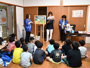 女性部会は、7月24日(金)杷木学童保育所、25日(金)立石1学童保育所、29日(火)甘木学童保育所、30日(水)立石2・3学童保育所、31日(木)三奈木学童保育所において、それぞれ法人会オリジナルの紙芝居「くるくるコドラ」を使って租税教室を開催しました。