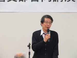朝倉支部及び東部支部では、2月16日朝倉地域生涯学習センターにおいて、中村学園大学教授 占部賢志氏を講師に招いて、「絆 〜語り継ぎたい美しい日本人の物語〜」という演題で、それぞれの支部会員及び地域住民を対象に、地域の活性化に資するため公開講演会を開催しました。 同日は、一般市民を含め約50名が出席しました。 |