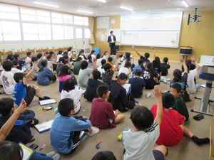 租税教室は朝倉地区租税教育推進協議会が主催し、管内の各小・中・高校の児童生徒を対象に、税務署、市町村、税理士会、法人会等が講師になって、税金の意義と役割について学習するものです。 今年度法人会は管内6小学校の6年生を対象に、青年・女性部会役員が講師となって教壇に立ちました。 租税教室終了後に提出された感想文には、「税金は必要なもので、身近なところで役立っていることがわかった。」などが書かれていました。 |